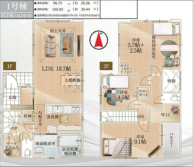 | 間取り | 3LDK 間取り内訳:リビングダイニングキッチン 18.7帖・洋室 9.1帖・洋室 8.2帖・洋室 4.5帖 |