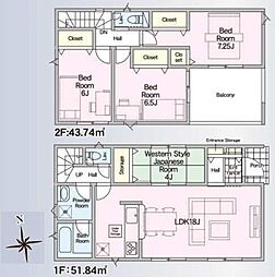 | 間取り | 3SLDK 間取り内訳:リビングダイニングキッチン 19.5帖(1階)・洋室 7.2帖(2階)・洋室 5.2帖(2階)・洋室 7.5帖(2階)・収納 2.2帖(2階) |