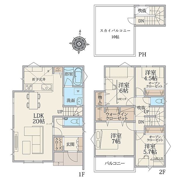 自慢のスカイバルコニーは10帖の広さ!天空の家で上質な時間を。高い断熱性能を備えたZEH水準住宅!オール電化で光熱費も安心。LDKは広々20帖!WIC等全居室収納完備で室内を有効活用! 自然の温もりや柔らかさを兼ね備えたナチュラルモダンスタイル。BBQや家庭菜園、お家プール等、第二のリビングとして活用できるスカイバルコニー。 使い方は家族の数だけ増えていく、そんな屋上庭園のある暮らしをはじめませんか。稲毛駅徒歩10分の好立地で、通勤・通学やお買い物に大変便利です!ぜひモデルハウスをご見学ください。