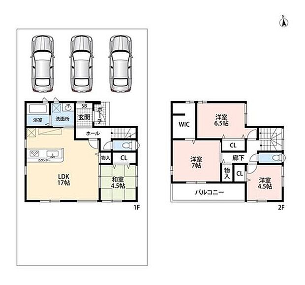 • 「建築条件付き土地」の「建物プラン例」は、土地購入者の設計プランの一例であり、プランの採用可否は任意です。