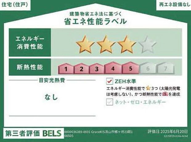 星マークの数が多いほどエネルギー消費性能が高いことを示しています。再エネ設備のない住宅は★0~★4の5段階評価、再エネ設備がある住宅は★0~★6の7段階評価となります。