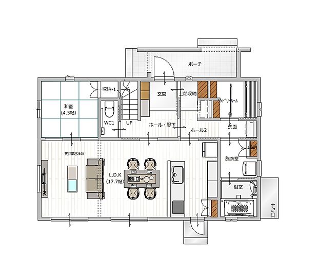 散らからない間取りで手間いらず! 収納がたくさん!土間収納や大きなクローゼットなど、収納スペースを多く確保しました。