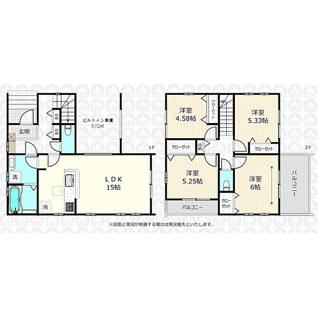 公道に面した角地/カースペース2台可/1階に水回りを集約した4LDK/バルコニー2ヶ所で通風・陽当良好