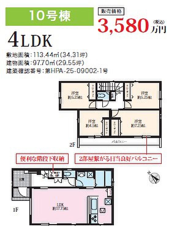 | 間取り | 4LDK 間取り内訳:リビングダイニングキッチン 17.7帖(1階)・洋室 7.2帖(2階)・洋室 4.5帖(2階)・洋室 5.2帖(2階)x2 |