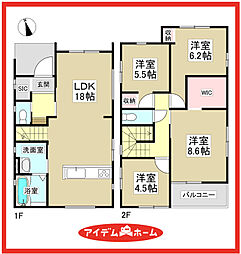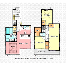 | 間取り | 2SLDK(階段下収納) 間取り内訳:リビングダイニングキッチン 20.1帖(1階)・収納 5.2帖(2階)・収納 5帖(2階) |
