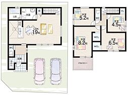 | 間取り | 3SLDK 間取り内訳:リビングダイニングキッチン 20帖(1階)・洋室 7.5帖(2階)・洋室 5.1帖(2階)・洋室 4.5帖(2階)・収納 5.2帖(2階) |