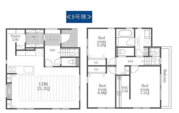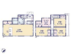間取り内訳:リビングダイニングキッチン(1階)・洋室 7.3帖(2階)・洋室 6帖(2階)・洋室 5.2帖(2階)