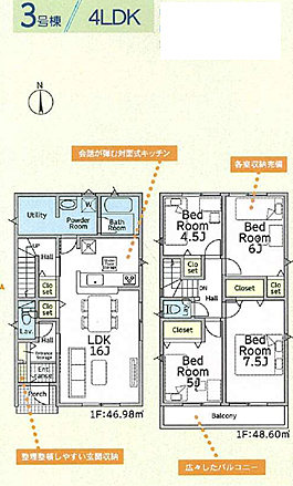 | 間取り | 4LDK(バルコニーあり) 間取り内訳:リビングダイニングキッチン 16帖(1階)・洋室 4.5帖(2階)・洋室 5帖(2階)・洋室 7.5帖(2階)・洋室 6帖(2階) |