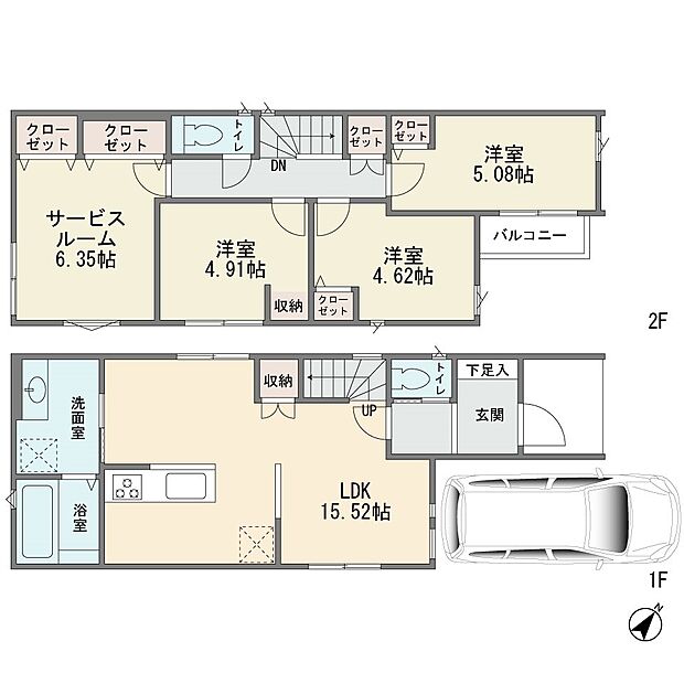 宮前平駅徒歩20分 新築分譲2階建て 3LDK+サービスルーム リビング階段 北東公道5.4M 都市ガス 整形地