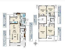 | 間取り | 4LDK 間取り内訳:リビングダイニングキッチン 16帖(1階)・和室 5.2畳(1階)・洋室 5.7帖(2階)・洋室 6帖(2階)・洋室 8帖(2階) |