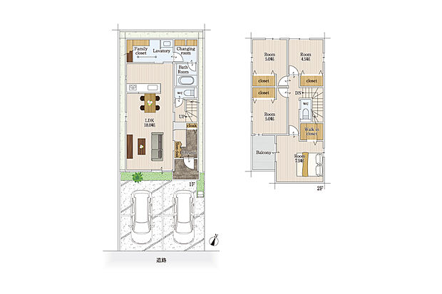 • 「建築条件付き土地」の「建物プラン例」は、土地購入者の設計プランの一例であり、プランの採用可否は任意です。
