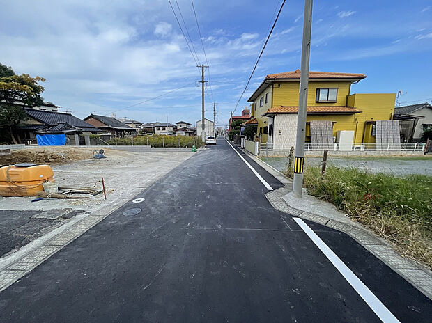 南側約5.9m公道【法42条1項1号道路】、西側約2.9m【法定外道路】