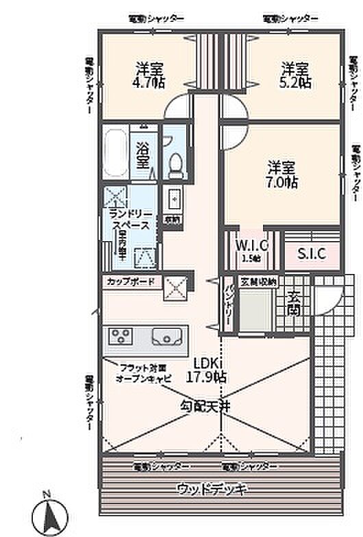 | 間取り | 3LDK 間取り内訳:リビングダイニングキッチン 17.9帖(1階)・洋室 7帖(1階)・洋室 5.2帖(1階)・洋室 4.7帖(1階) |
