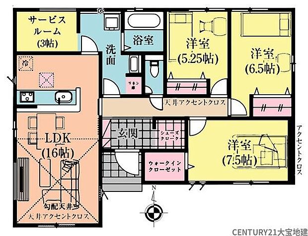 | 間取り | 3LDK 間取り内訳:リビングダイニングキッチン 16帖(1階)・洋室 7.5帖(1階)・洋室 6.5帖(1階)・洋室 5.2帖(1階) |