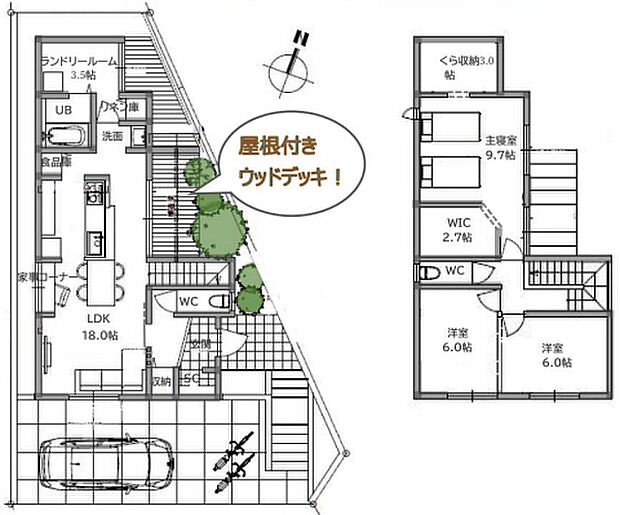 2沿線利用可 庭 対面式キッチン 全居室フローリング ウッドデッキ 風呂の湯が冷めた時も追焚機能浴室があるので便利です 訪問者をカメラで確認できるTVインターホン設置済み。リビングでくつろげる3SLDKの物件です。新築の戸建てで気分爽快な生活を送りましょう。