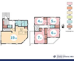 | 間取り | 4LDK 間取り内訳:リビングダイニングキッチン 18.6帖(1階)・洋室 6.5帖(2階)・洋室 6帖(2階)・洋室 5.8帖(2階)・洋室 5.3帖(2階) |