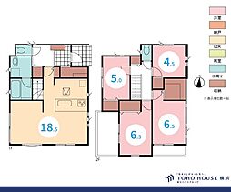 | 間取り | 4LDK 間取り内訳:リビングダイニングキッチン 18.5帖(1階)・洋室 6.5帖(2階)・洋室 6.5帖(2階)・洋室 5帖(2階)・洋室 4.5帖(1階) |
