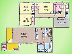 | 間取り | 3LDK 間取り内訳:リビングダイニングキッチン 17帖・洋室 6帖・洋室 5.2帖・洋室 5.2帖 |