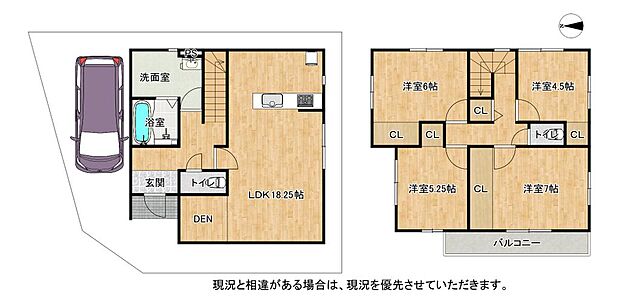 | 間取り | 4LDK 間取り内訳:リビングダイニングキッチン 18.2帖(1階)・洋室 7帖(2階)・洋室 6帖(2階)・洋室 5.2帖(2階)・洋室 4.5帖(2階) |