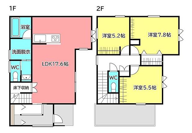 | 間取り | 3LDK 間取り内訳:リビングダイニングキッチン 17.6帖・洋室 5.2帖・洋室 5.5帖・洋室 7.8帖 |