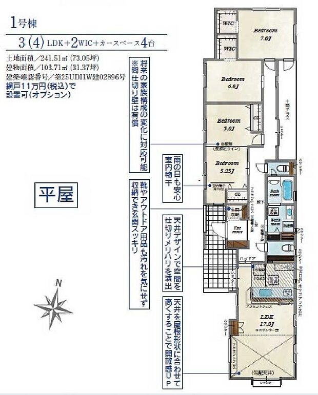 | 間取り | 3LDK(間仕切り対応可の部屋あり) 間取り内訳:リビングダイニングキッチン 17帖(1階)・洋室 10.2帖(1階)・洋室 6帖(1階)・洋室 7帖(1階) |