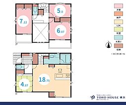 | 間取り | 4LDK 間取り内訳:リビングダイニングキッチン 18.5帖(1階)・洋室 6.5帖(2階)・洋室 6帖(2階)・洋室 5.5帖(2階)・洋室 5.5帖(2階) |