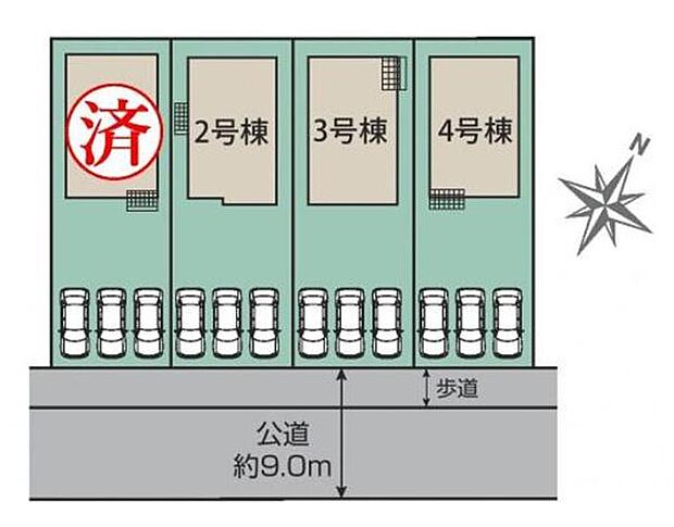 • 備考欄:[物件コード]059101-147642、3棟(3号棟) カースペース3台分有