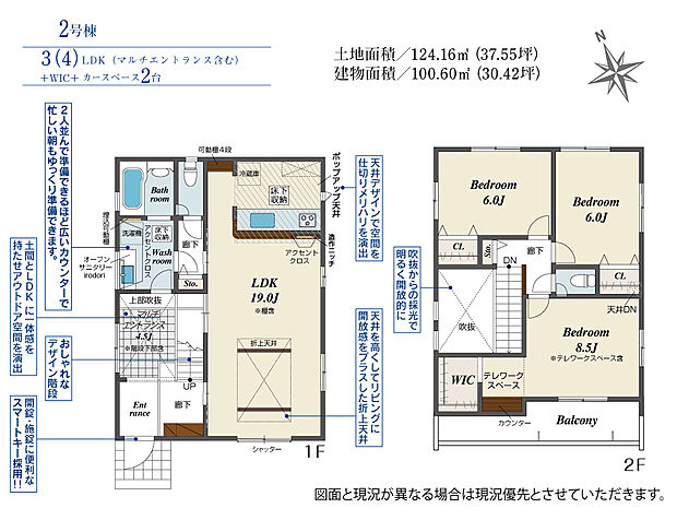 - 「建築条件付き土地」の「建物プラン例」は、土地購入者の設計プランの一例であり、プランの採用可否は任意です。