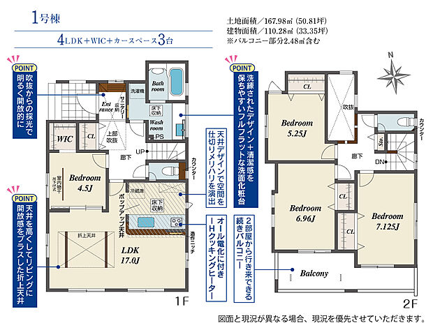 | 建物面積 | 110.28m2(約33.35坪)~110.55m2(約33.44坪) | ||