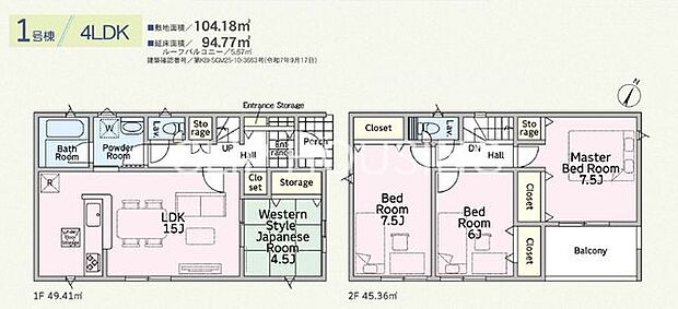 | 間取り | 4LDK 間取り内訳:リビングダイニングキッチン 15帖(1階)・和室 4.5畳(1階)・洋室 6帖(2階)・洋室 7.5帖(2階)・洋室 7.5帖(2階) |