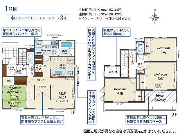 189.68m2(約57.37坪)~189.90m2(約57.44坪) |