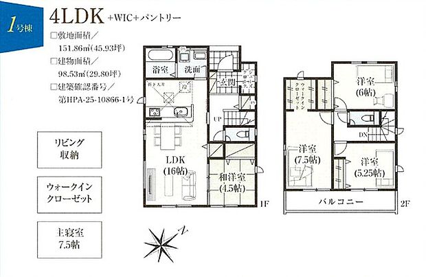 | 間取り | 4LDK 間取り内訳:リビングダイニングキッチン 16帖・和室 4.5畳・洋室 7.5帖・洋室 6帖・洋室 5.2帖 |