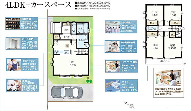 | 間取り | 4LDK 間取り内訳:リビングダイニングキッチン 15.5帖(1階)・洋室 4.5帖(2階)・洋室 4.5帖(2階)・洋室 4.5帖(2階)・洋室 4.5帖(2階) |