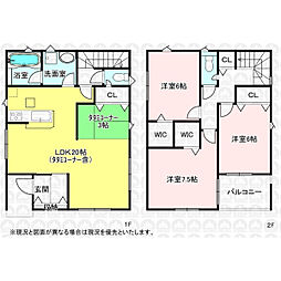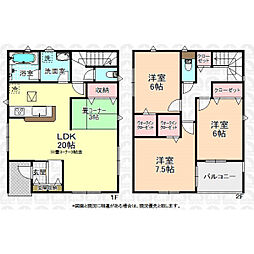 | 間取り | 3LDK 間取り内訳:リビングダイニングキッチン 17帖(1階)・洋室 7.5帖(2階)・洋室 6帖(2階)x2 |