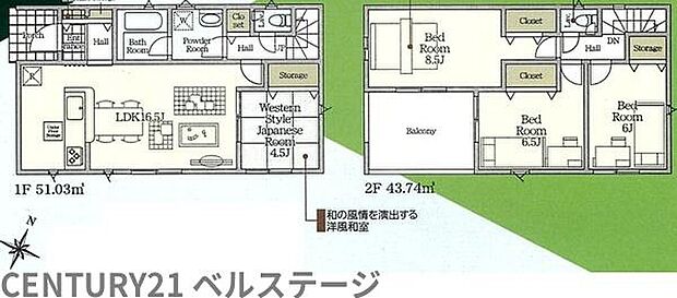 | 間取り | 4LDK 間取り内訳:リビングダイニングキッチン 16.5帖(1階)・和室 4.5畳(1階)・洋室 8.5帖(2階)・洋室 6.5帖(2階)・洋室 6帖(2階) |