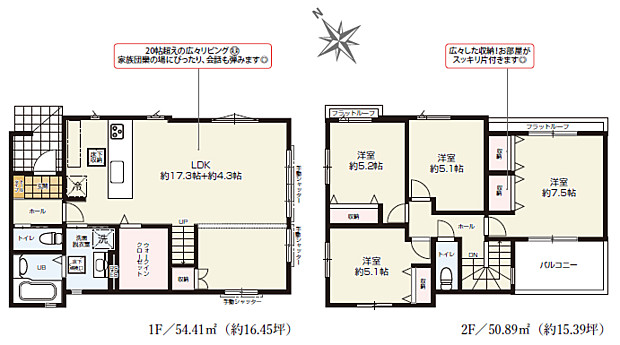 | 間取り | 4LDK 間取り内訳:リビングダイニングキッチン 21.6帖(1階)・洋室 7.5帖(2階)・洋室 5.2帖(2階)・洋室 5.1帖(2階)x2 |