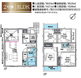| 間取り | 3LDK 間取り内訳:リビングダイニングキッチン 17帖・洋室 6帖・洋室 5.2帖・洋室 4.1帖x2 |
