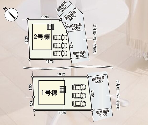 土地面積 1号棟169.47m2(51.26坪)2号棟170.84m2(51.67坪)