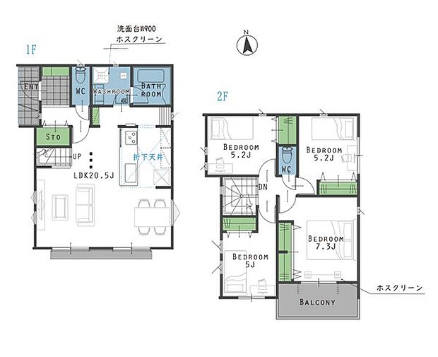 • 「建築条件付き土地」の「建物プラン例」は、土地購入者の設計プランの一例であり、プランの採用可否は任意です。