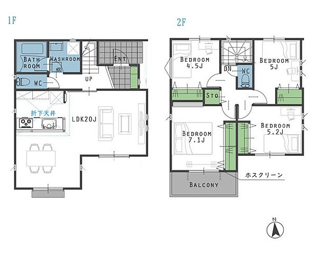 • 「建築条件付き土地」の「建物プラン例」は、土地購入者の設計プランの一例であり、プランの採用可否は任意です。