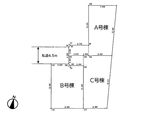 | 私道負担 | 105.75m2私道負担割合:8分の1 | 用途地域 | 第一種住居地域 |