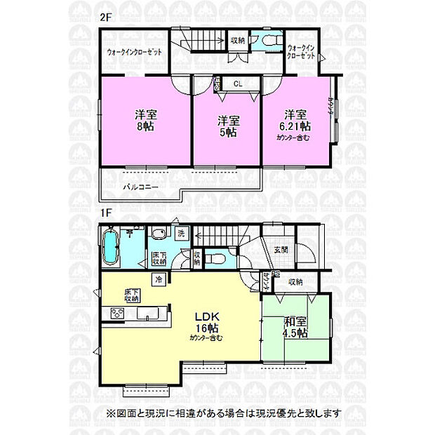 LDK約16帖の対面キッチンで開放感・通風良好 /主寝室は8帖/2か所のウォークインクローゼット