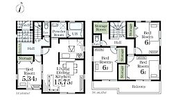 | 間取り | 4LDK 間取り内訳:洋室 5.3帖・リビングダイニングキッチン 15.7帖・洋室 6帖・洋室 6帖・洋室 6帖 |