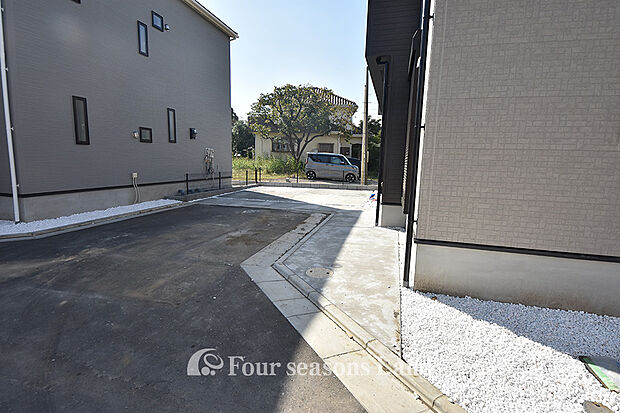 全室南向きにつき日当たり良好、明るい室内。 LDKは約16帖、人気の対面式キッチンは保存食なども収納できる床下収納付き。 車は並列2台駐車可能、1台分は来客用としてもお使いいただけます。(車種による)