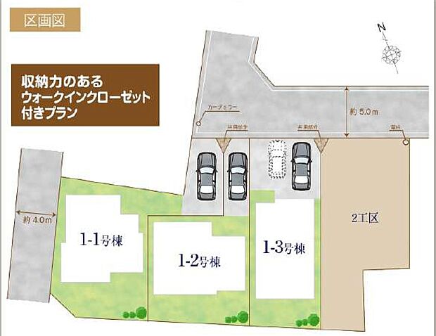 1~1号棟:北東5m 北西4m /1~3号棟:北東5m /1~2号棟:北東5m