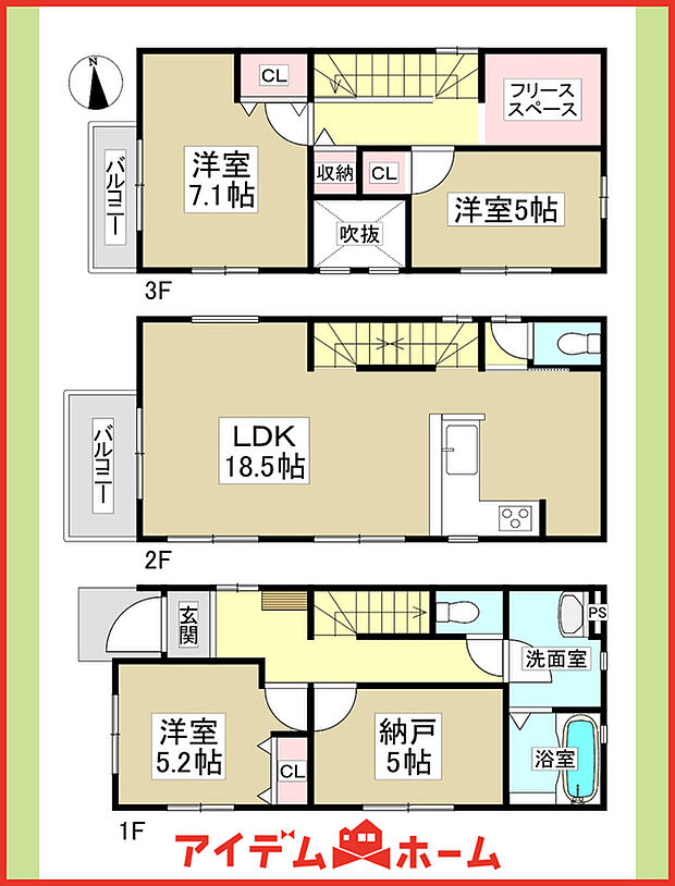 間取り 3SLDK~4SLDK 建物階 木造3階建