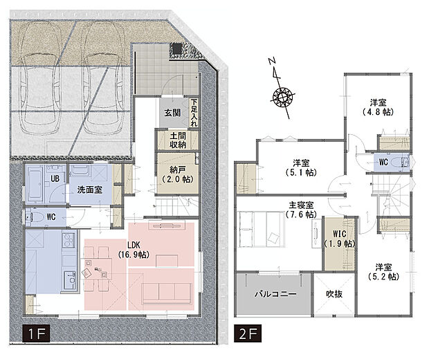| 建物面積 | 103.94m2(A号棟)~104.35m2(B号棟) | ||