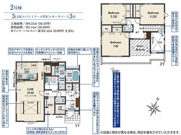 建物面積 101.14m2(約30.59坪)~111.58m2(約33.75坪)