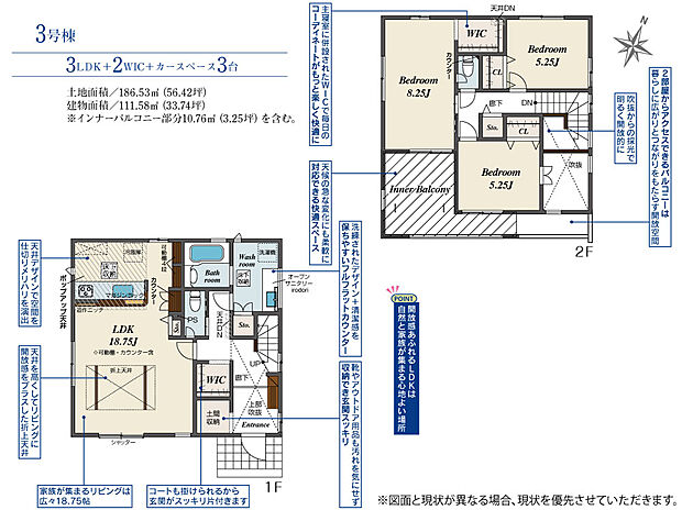 土地面積 186.53m2(約56.42坪)~292.54m2(約88.49坪)