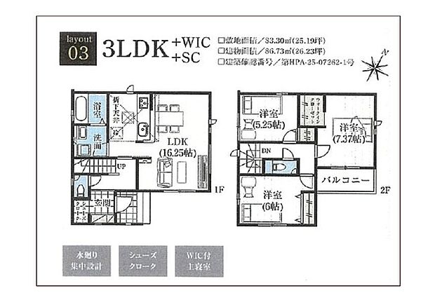 | 間取り | 3LDK 間取り内訳:リビングダイニングキッチン 16.2帖・洋室 7.3帖・洋室 6帖・洋室 5.2帖 |